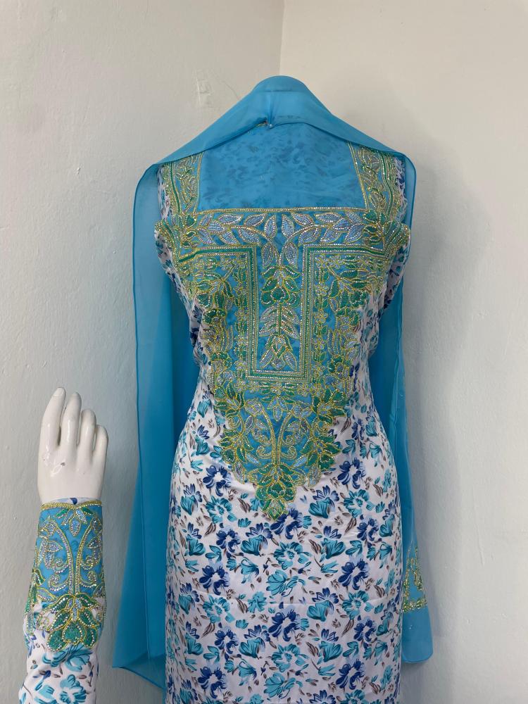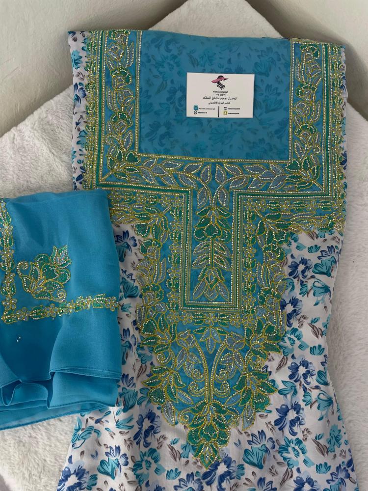 حرير اندنوسي ناعم بطرحه تطريز وكريستال صدر واكمام